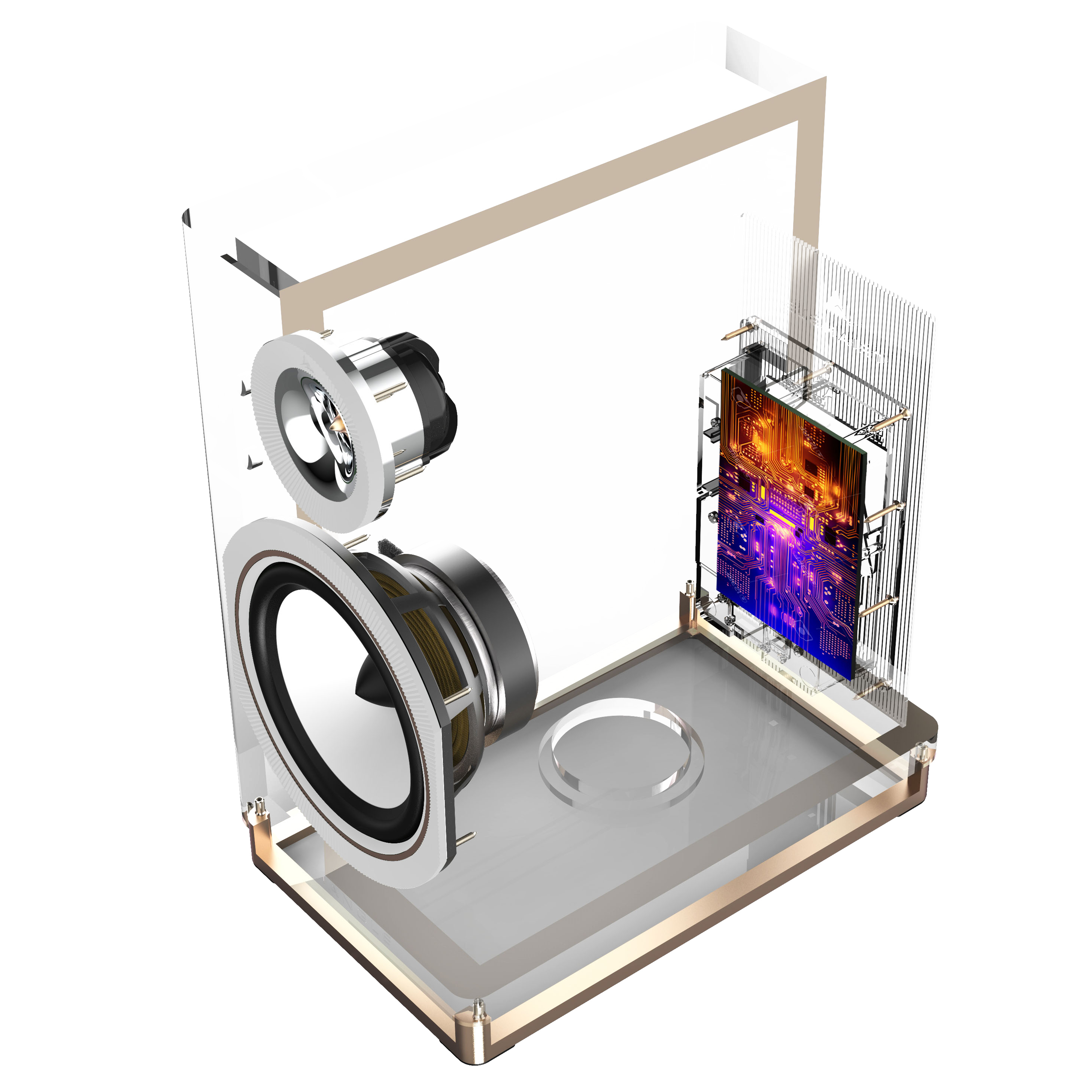 This technology corrects unwanted resonances and optimises the soundstage for a more natural sound that is perfectly suited to your listening environment. The result is controlled, balanced and faithful sound, regardless of your interior layout.
