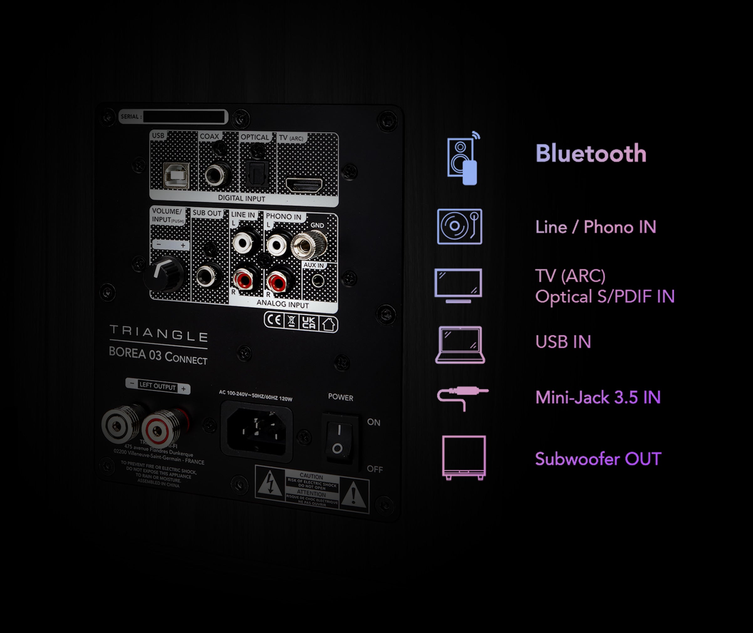The BOREA CONNECT speakers feature an integrated phono preamplifier, making it easy to connect most turntables on the market. Rediscover the warmth, depth and unique emotions of your 33 and 45 rpm records.